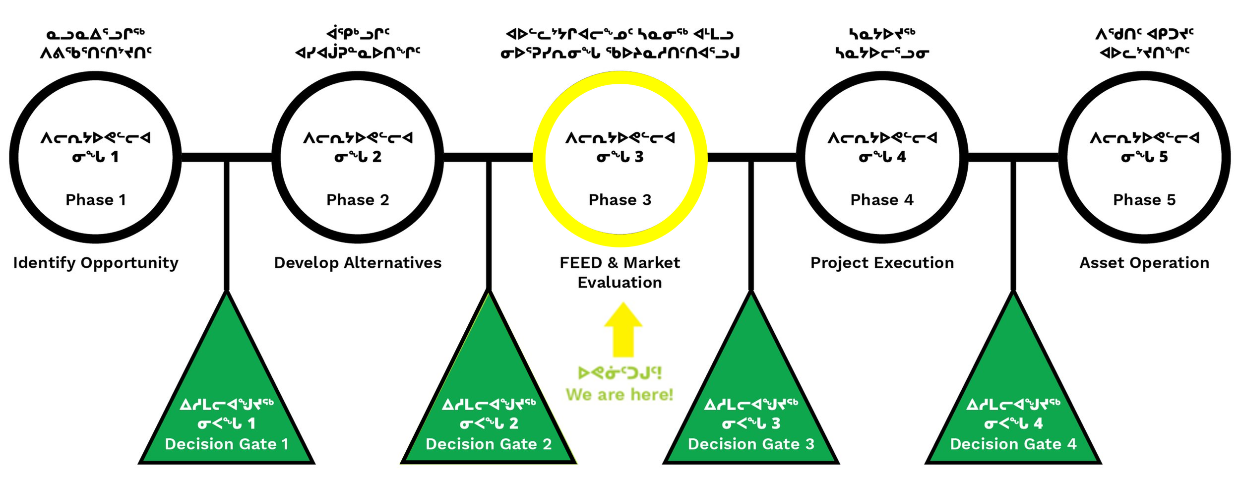 Between each phase, there is a decision gate. This gate offers a pause for Inuit Rightsholders to decide whether or not the project should advance to the next phase.